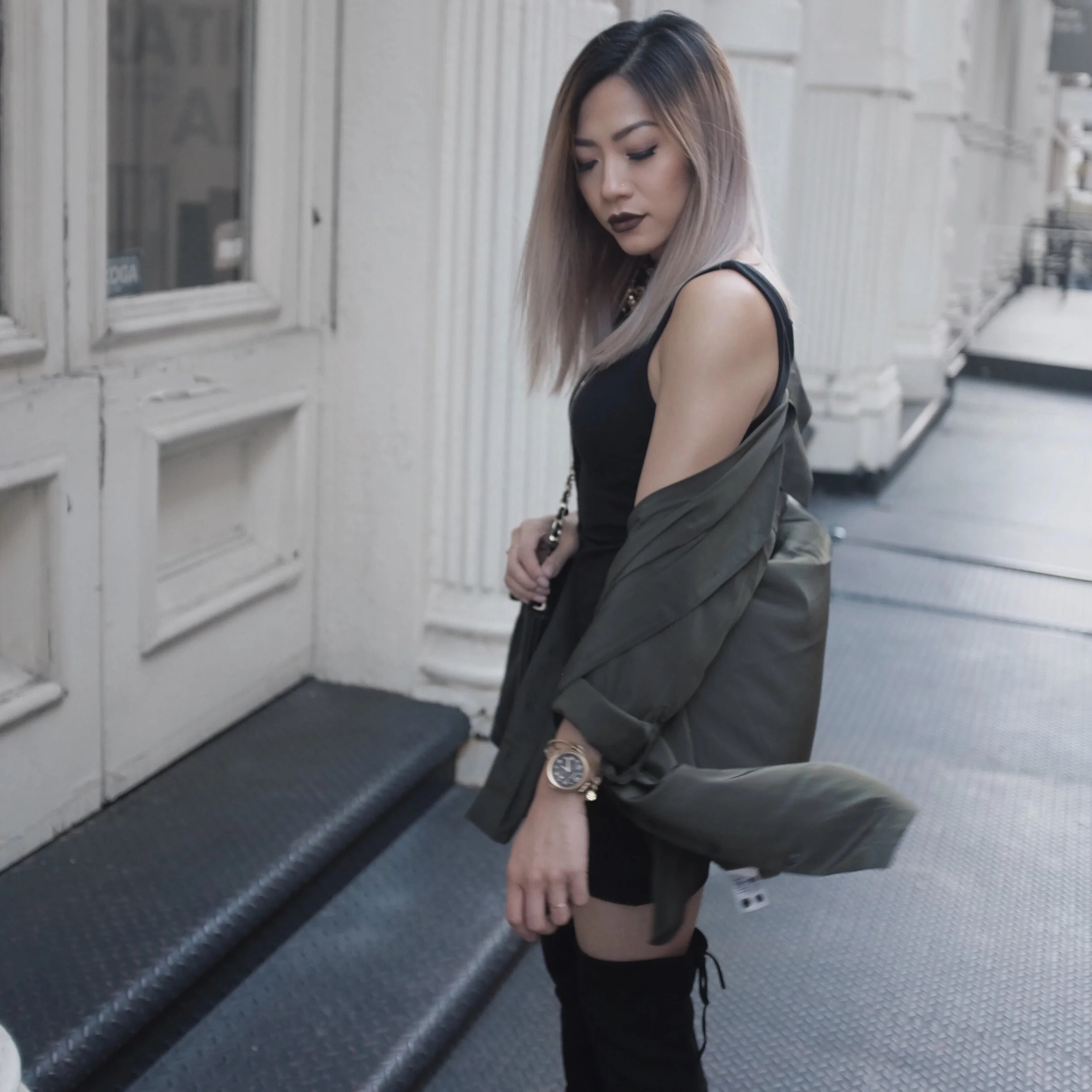 Today we are pairing an easy Fall Outfit for those days we just have no time to over think an outfit. Pairing a duster coat or even a long button blouse over a long tank or this super versatile F21 bodycon dress and adding a pair of over the knee boots, gets you out the door looking cute and stylish. But the real cherry on the sundae has to be the Henri Bendel No. 7 convertible back pack / bucket bag; this bag adds a touch of glam to every outfit and easy to switch to a versatile backpack in less than a minute. Can I get a YEASSS GIRL! ;)